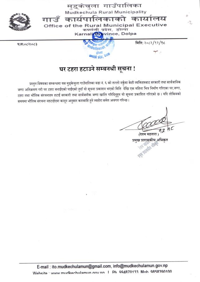 घर टहरा हटाउने सम्बन्धी सूचना !