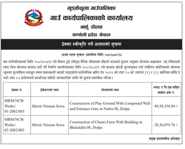 ठेक्का आशयको सूचना ।