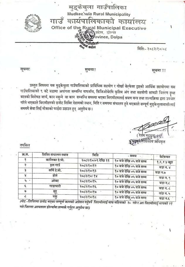 शिविर संचालन हुने सम्बन्धी जरुरी सूचना ।