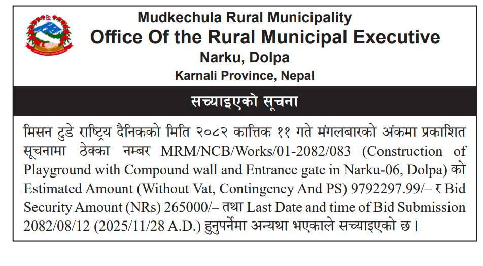 त्रुटी सच्याईएको सम्बन्धि सूचना ।