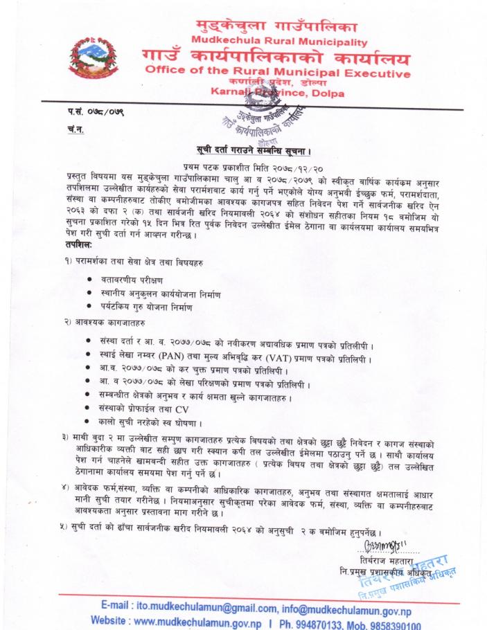 सुचिदर्ता गराउने सम्वन्धी सूचना